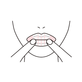 マイクロニードルが唇に刺さるように、唇の中央部分をゆっくり押さえます。