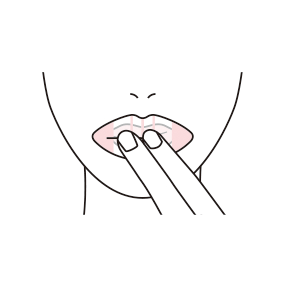プランプエッセンスをパックの上から唇にたっぷり塗り広げ、15秒ほど指のはらでマッサージ。パックをはがして、残ったエッセンスは唇になじませてください。